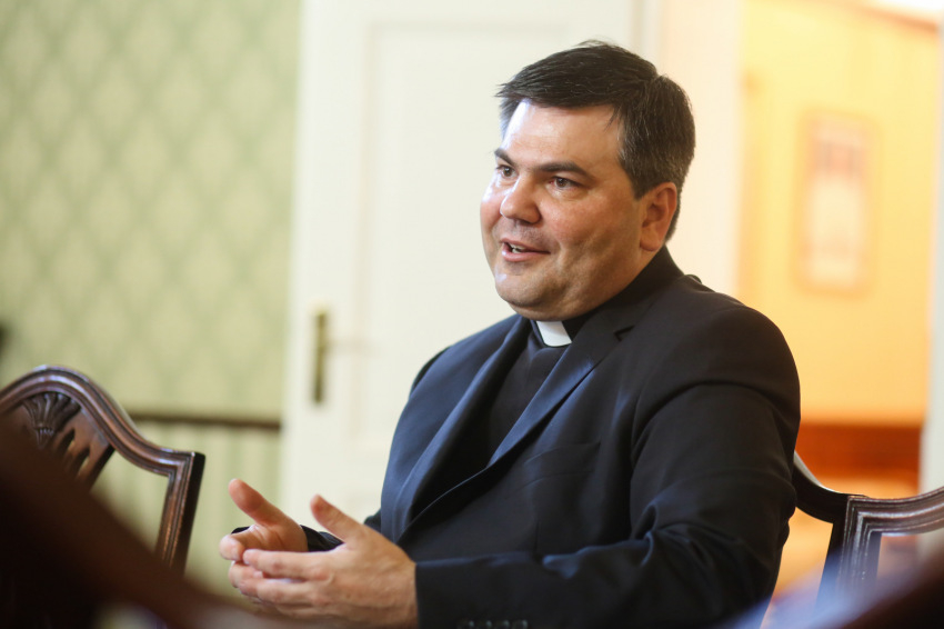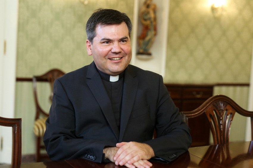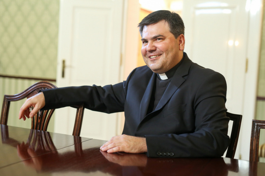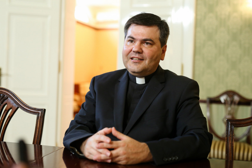 – Egy elmélkedés utáni imát szeretnék idézni: „Tanítson meg a szentséges és szeplőtelen Szűz a pápa és az Egyház pásztorai iránti hűségre.” Ennek szellemében igyekszem szolgálni. A munkámnak három fő területe van. Az első a kapcsolattartás a magyar állami közintézményekkel. Ezen a területen általában világi emberekkel találkozom, akik nem biztos, hogy ismerik az Egyházat, a Szentszéket. Egy másik fontos feladatkör a kapcsolattartás a nagykövetségekkel, amelyeknek igen nagy a rálátásuk a különböző helyzetekre. Sokszor azonban nincs kapcsolatuk a Katolikus Egyházzal, hiszen nem minden országban követik a katolikus vallást, gondoljunk csak a keleti országokra vagy a közel-keleti régióra. A nunciusi titkár feladatai közé tartozik a kapcsolattartás az egyes egyházmegyékkel és a szerzetesi elöljárókkal is.