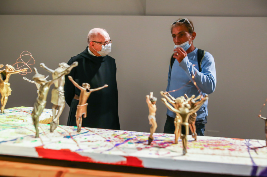 „Mindenből tovább lehet építkezni. És még egy hiba is több tudáshoz, tapasztalathoz juttathat, teljesebbé tehet, és nem megrövidít” – vallja a művész a kiállításon látható interjúban. Az újrakezdés, az önkifejezés, a kudarcokkal és önmagunkkal való szembenézés volt a kiállítás rendezésének alapvető vezérfonala – mondta el a tárlat másik kurátora, Dejcsics Konrád bencés szerzetes. – És mindennek a mélyén ott van az ember és Isten találkozása, az a tapasztalat, amikor Krisztus arcában felfedezzük a saját arcunkat.