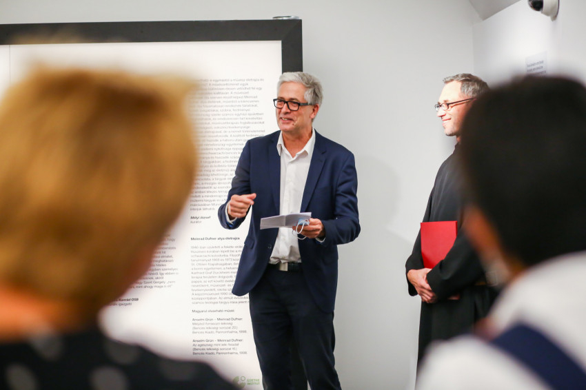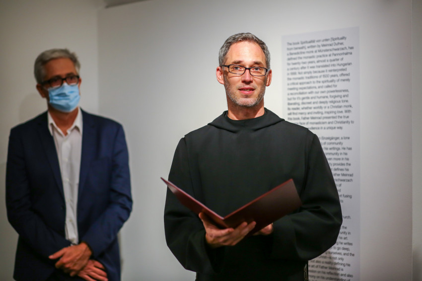 A megnyitón Hortobágyi T. Cirill OSB főapát köszöntőjében felidézte: a pannonhalmi bencés közösség évtizedek óta ismeri Meinrad atyát; az 1980-as években tartott itt lelkigyakorlatot, majd 1989 novemberében egy hetet töltött Pannonhalmán – abban az izgalmas időszakban, amikor bontották a berlini falat…