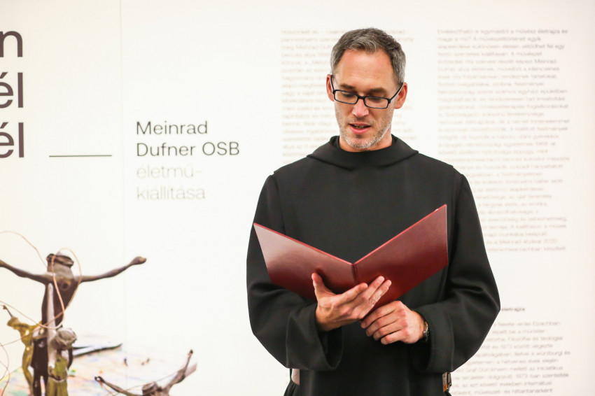 Stefan Brunner, a kiállítás létrejöttét a Nemzetközi Eucharisztikus Kongresszus (NEK) Titkársága mellett támogató Goethe Intézet igazgatóhelyettese megnyitóbeszédében elmondta: Németországban számos nagyszabású kiállításon mutatták már be Meinrad Dufner munkásságát, a bajor televízió pedig dokumentumfilmet forgatott róla. Lenyűgöző életművének sokszínűsége: teológus, pszichológus, egy sor könyv szerzője és művész, aki az anyagok végtelen bőségéből válogat és hoz létre alkotásokat. Nem riad vissza a hagyományokkal való kritikus szembenézéstől, megkérdőjelezi a jól bejáratott megközelítési módokat, esetenként pedig le is rombolja azokat.