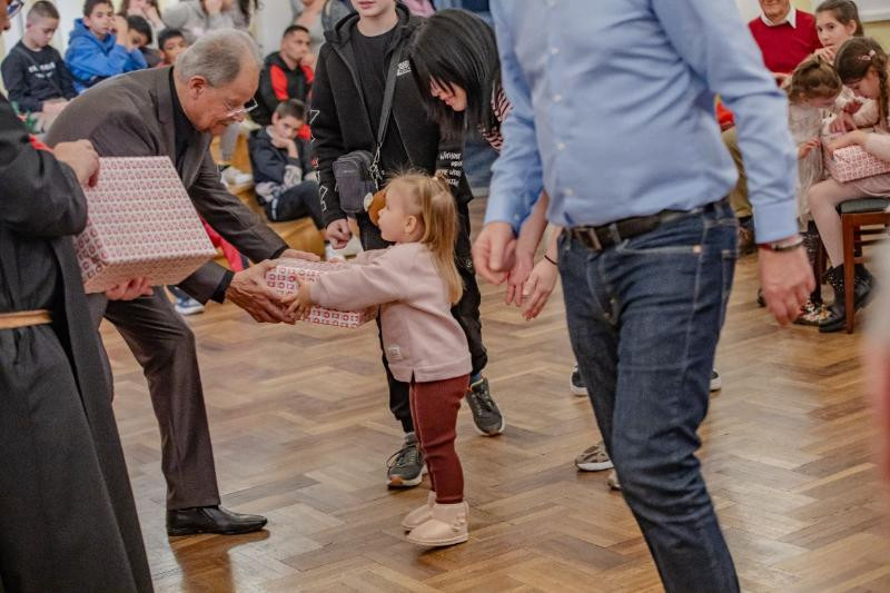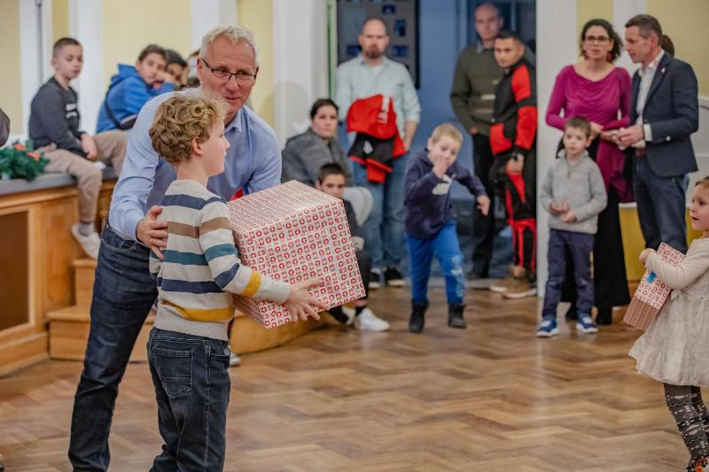 A délután egyik legjobban várt része a névre szóló ajándékok átadása volt. Az angyalbatyuk jelentéséről Zagyva Richárd, a Katolikus Karitász országos igazgatója szólt a gyerekekhez, hogy megfejtsék, miért „angyal” ez a batyu.