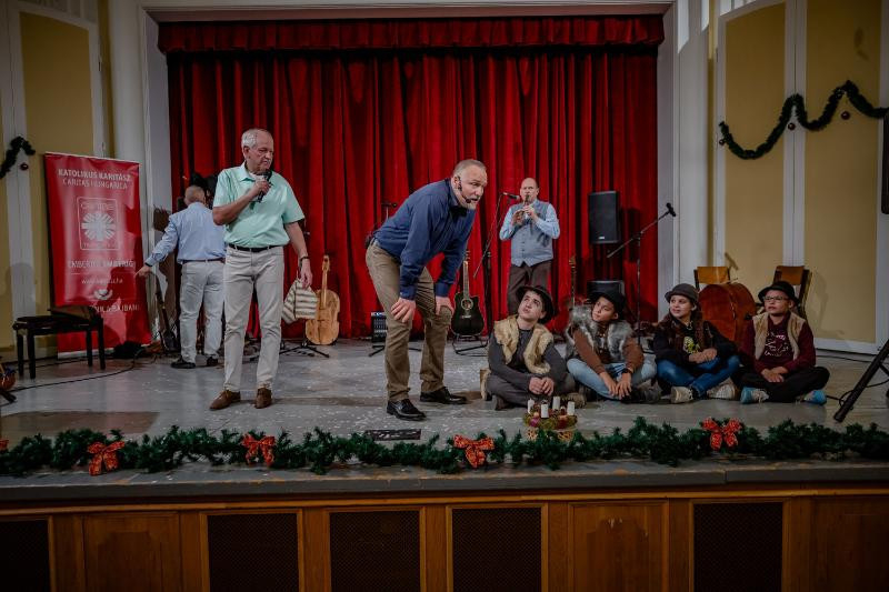 Szeretettel köszöntötte a közel 350 résztvevőt Farkas Gábor, a segélyszervezet munkatársa, aki már a nyitószavaival közösségivé tette az alkalmat. Felhívta a figyelmet: ez a délután most a találkozásról, az örömről és a figyelmességről szól a „Tárjátok ki a szíveteket!” adventi segélyakció részeként. A Karitász budapesti Integrációs Központjához tartozó menekült családok, baranyai felzárkózó településekről érkezett fiatalok és a Kalocsa-Kecskeméti, Székesfehérvári, Váci Egyházmegyék karitászszervezetei által támogatott gyermekek ünnepeltek együtt.