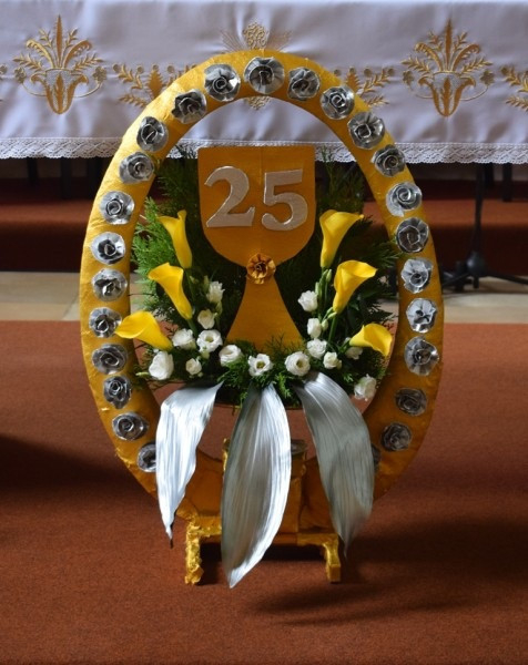 A szentmise végén a jubiláns ezüstmisés áldásban részesítette a híveket.