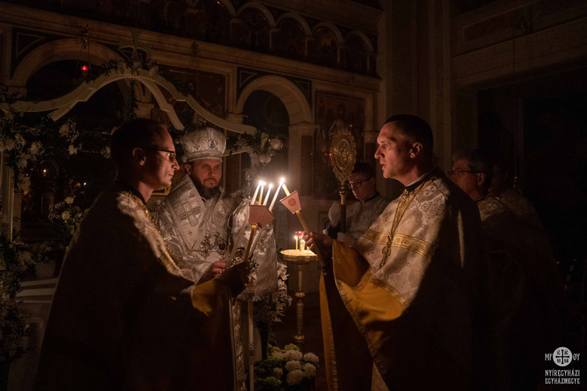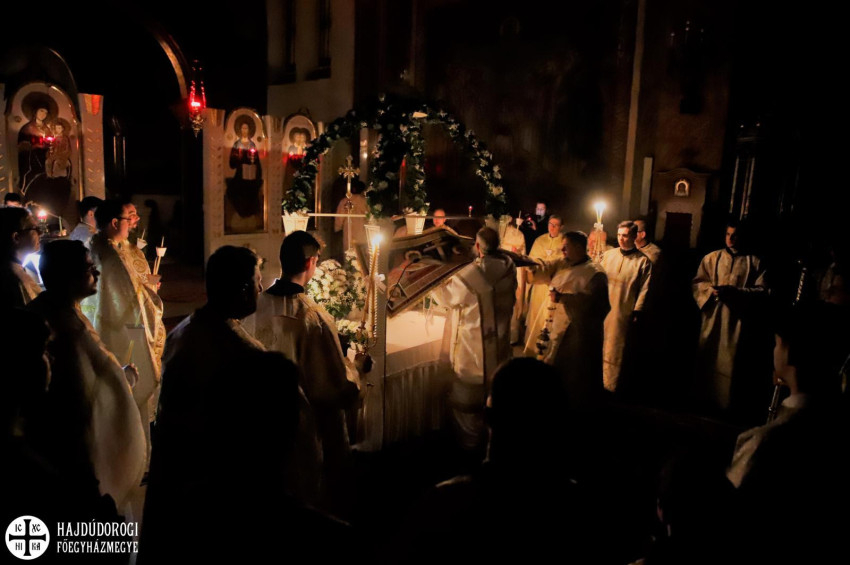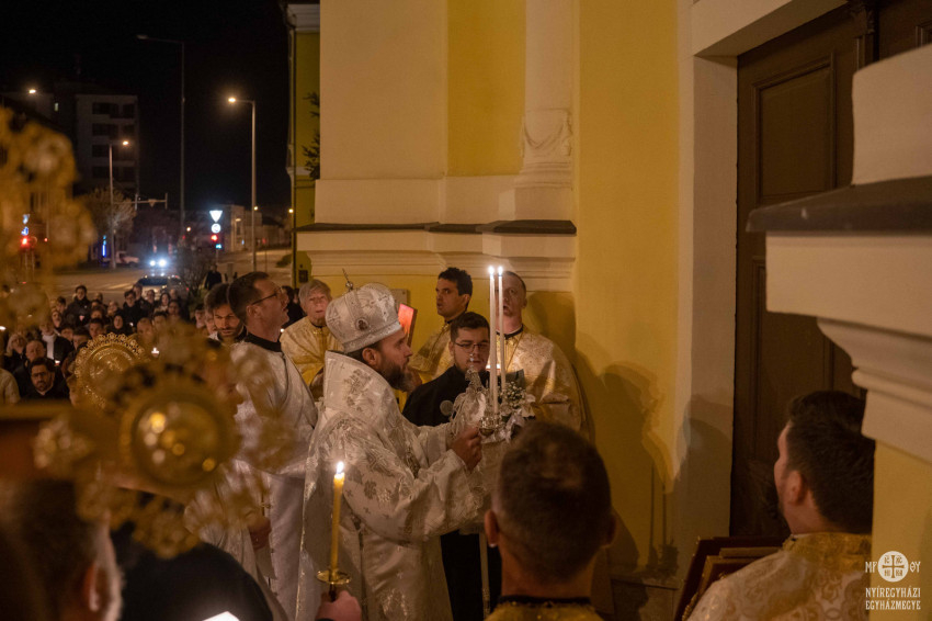 A nyíregyházi székesegyházban március 8-án éjfél előtt pár perccel abbamaradt a sírbatételi vecsernye óta tartó virrasztás, szentírásolvasás a Szent Sír előtt. A nagyszombati csendességet a tömjénező csengettyűi törték meg elsőként.