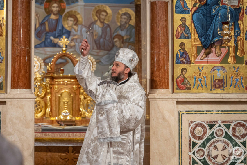 Az utrenye végén a főpásztor megszentelte a pászkáskosarakat, és a szentelt vízzel a híveket is meghintette.