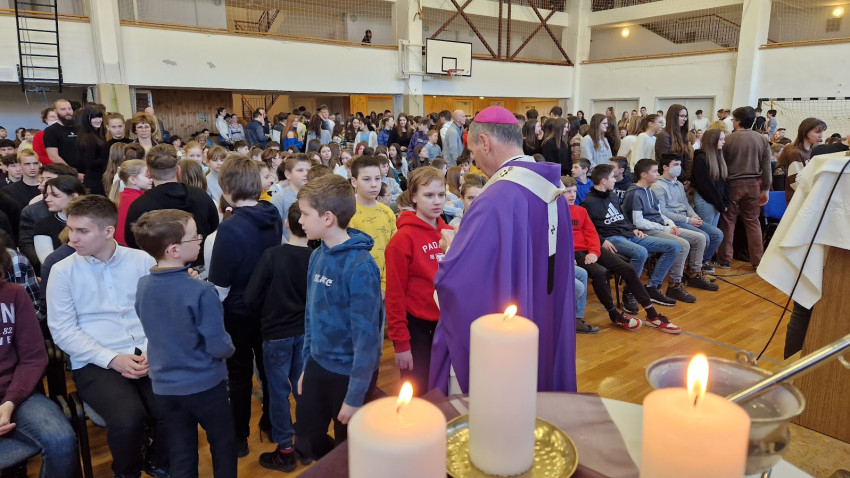 A Padányi Katolikus Iskola diákjainak Udvardy György érsek celebrálta a hamvazószerdai szentmisét, melyet az iskola tornacsarnokában tartottak meg február 22-én. Az intézmény tanulói a koronavírus járvány miatti kényszerű szünet után ismét együtt vehettek részt a húsvéti ünnepkört megelőző nagyböjt első napján megtartott hamvazószerdai szentmisén, így a több mint ezer diák zsúfolásig megtöltötte szerda reggel a Padányi Katolikus Iskola tornatermét.