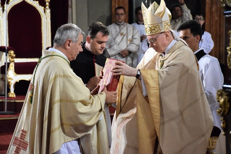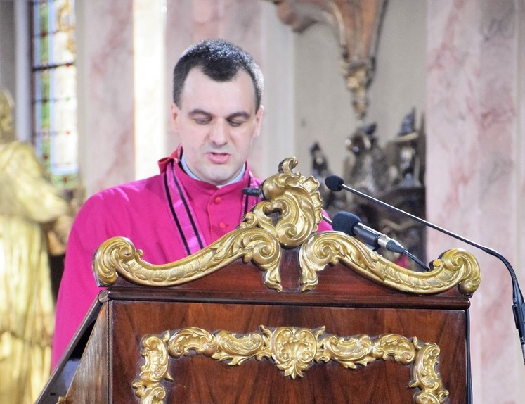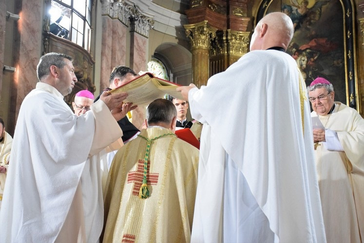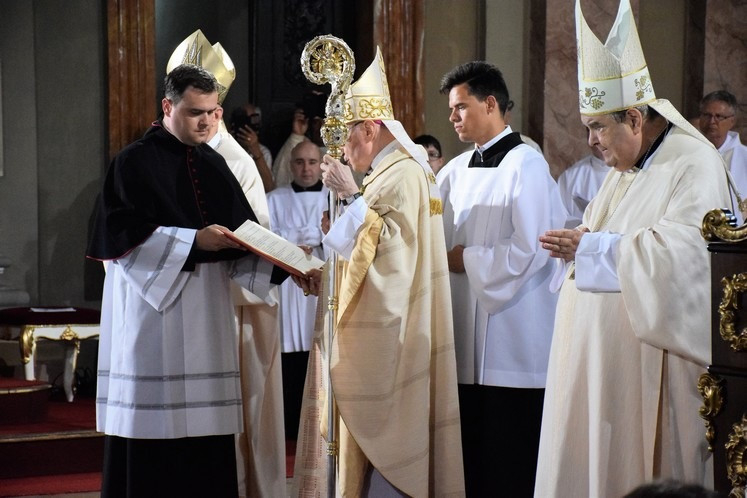 A szentelendő bemutatása után Lauš Nikola püspöki irodaigazgató olvasta fel a kinevezésről szóló pápai bullát három nyelven.