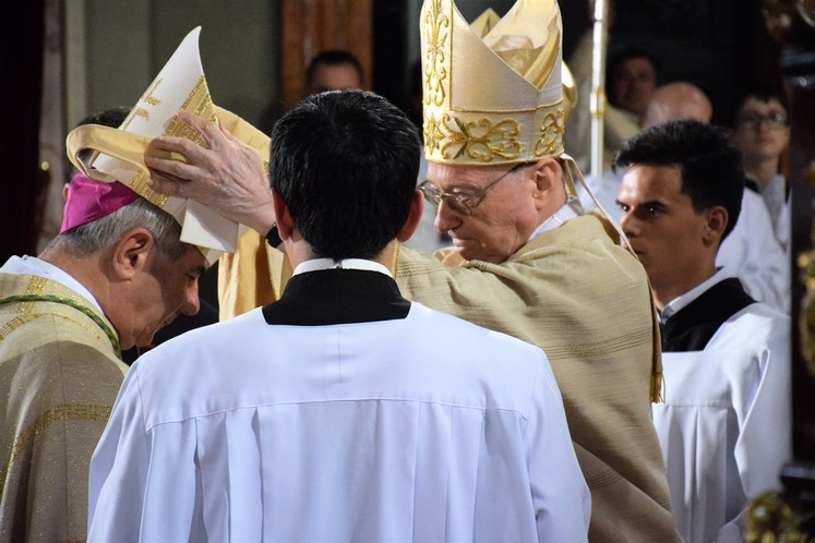 A homíliát a szentelendő ígérete követte feladatának hűséges vállalásáról. Pál József Csaba megígérte és vállalta, hogy a Szentlélek kegyelmével mindhalálig teljesíteni fogja azt a hivatást, amelyet az apostolok reánk bíztak, és amelyet kézfeltétel által megkapott, hogy hűségesen és szüntelenül hirdetni fogja Krisztus evangéliumát, hogy tisztán és sértetlenül megőrzi a hitletéteményt, ahogy azt az apostolok kora óta mindig és mindenütt őrizte az Egyház hagyománya, hogy építeni fogja Krisztus testét, az Egyházat, és megmarad annak egységében a püspökök testületével együtt, Szent Peter apostol utódjának tekintélye alatt, hogy hűségesen engedelmeskedik Szent Péter apostol utódjának, hogy az áldozópapokkal és szerpapokkal, a szolgálatban társaival Isten szent népét jóságos atya módjára gondozni fogja és az üdvösség útjára fogja irányítani, hogy Urunk szent nevéért barátságosan és könyörületesen fordul a szegények, az idegenek és minden rászoruló felé, hogy jó pásztorként keresni fogja és Urunk nyájába visszavezeti a tévelygő juhokat, hogy Istenhez az ő szent népéért szüntelenül könyörögni és a főpapi hivatásban feddhetetlenül munkálkodni fog.