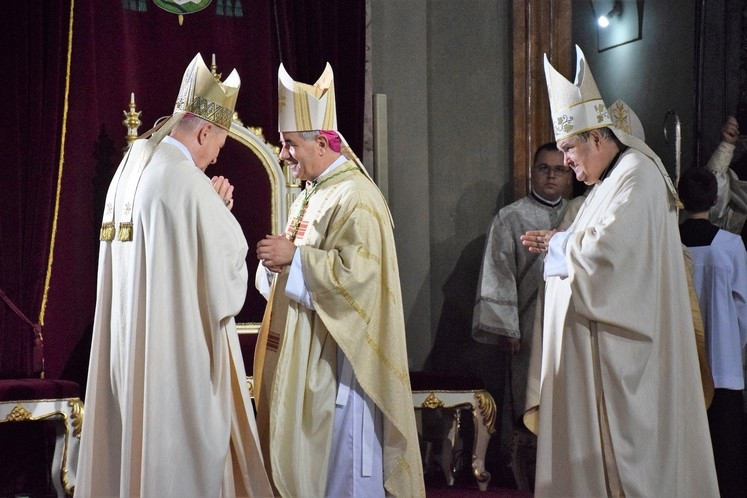 Martin Roos leköszönő püspök köszöntőjében kiemelte, hogy a püspökszentelés az adott egyházmegye és Isten egész népe számára kiemelkedő esemény; kérte, hogy „az Isten, legfőbb pásztorunk és egyházának feje tegye teljessé áldásával és kegyelmével mindazt, amit ma a temesvári székesegyházban törékeny szolgálatunk által megkezd”.