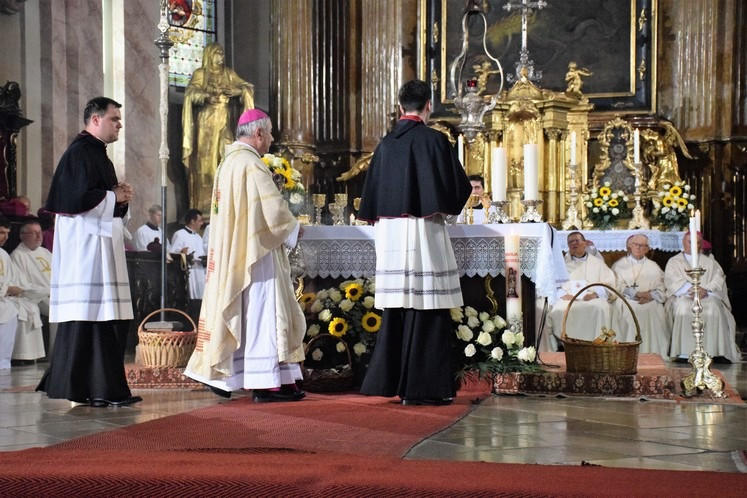 A felajánlási adományokat az egyházmegye fiataljai vitték az új püspöknek. A befejező áldás előtt a hálaadó ének, a Te Deum éneklése közben Pál József Csaba áldást osztva vonult végig a hívek között, és a székesegyházon kívülre is kiment a szertartást kivetítőn követő hívek közé.