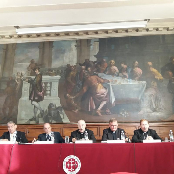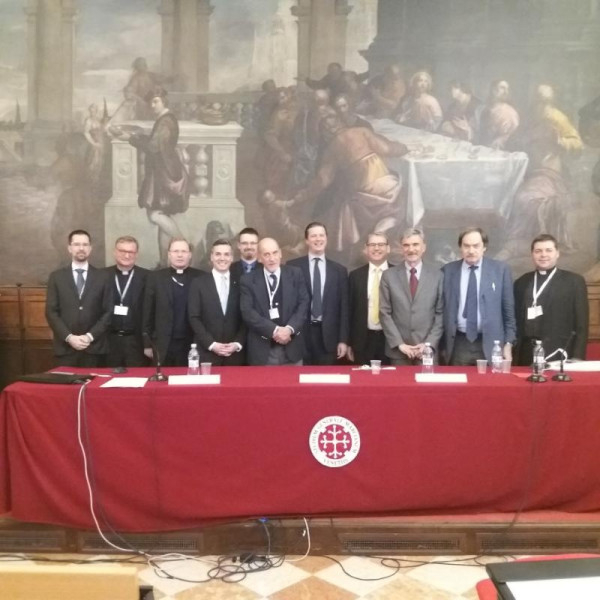 A konferencia megszervezésében közreműködött a római Pápai Magyar Intézet és Magyarország Szentszéki Nagykövetsége. A velencei kánonjogi fakultás nevében a konferencia főszervezője, Giuliano Brugnotto dékán köszöntötte a szimpózium résztvevőit és a megjelenteket. A két szesszióból álló tudományos eszmecsere első szessziójának elnöke Bernard Ardura O.Praem., a Pápai Történelmi Bizottság elnöke volt. Bevezetőjében elmondta: a nagy háború következményei alapvetően átrendezték a politikai, gazdasági kereteket, valamint az Egyház és az emberek életeinek kereteit az egész világon; magában hordozták a még több emberáldozatot, embertelenséget és kegyetlenséget hordozó újabb háborút; sőt, lezárásának hatásai mind a mai napig tartó fájdalmat jelentenek. Bernard Ardura kifejezte meggyőződését, hogy száz évvel az események után lehetséges jóval objektívabb, egyik fél felé sem elfogult megállapításokat tenni, a rendelkezésre álló levéltári és további elsődleges források alapján.