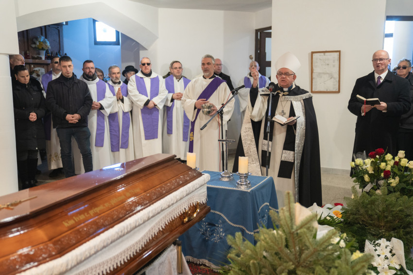 A szentmisét követően a papság és a hívek a Boldog Gizella-templomba vonultak, melynek altemplomában Varga László megyéspüspök örök nyugalomra helyezte Kiss Iván nyugalmazott marcali plébánost.