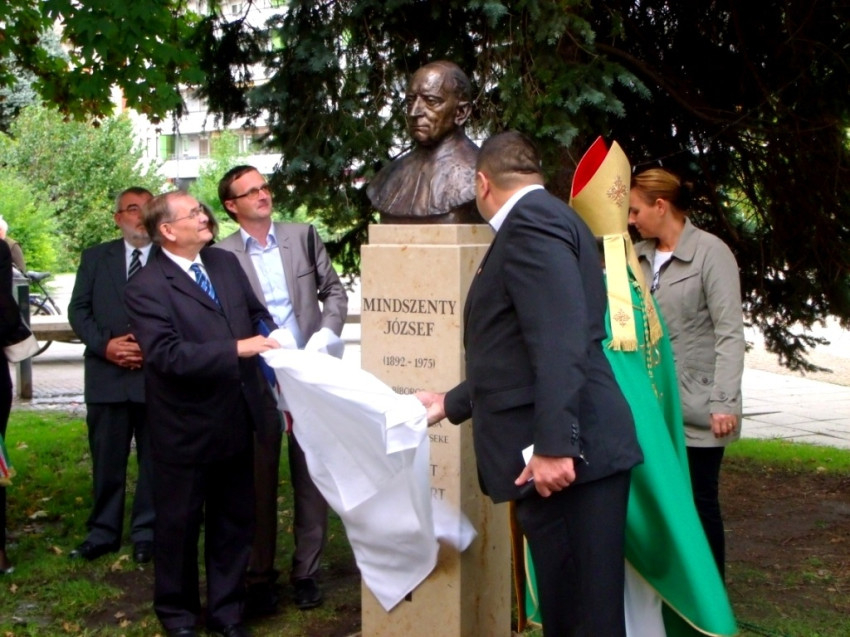 Máté István csongrádi szobrászművész alkotását – amelynek talapzatát Fellegi Tamás kőfaragó készítette –, s amely bronz mellszobrot a Lakitelki Népfőiskola ajándékozott a városnak, Bábel Balázs, a Kalocsa-Kecskeméti Főegyházmegye érseke; Lezsák Sándor, az Országgyűlés alelnöke, a Mindszenty Társaság ügyvezető elnöke; Szemereyné Pataki Klaudia, Kecskemét Megyei Jogú Város polgármestere; valamint Mák Kornél és Szeberényi Gyula Tamás alpolgármesterek leplezték le.