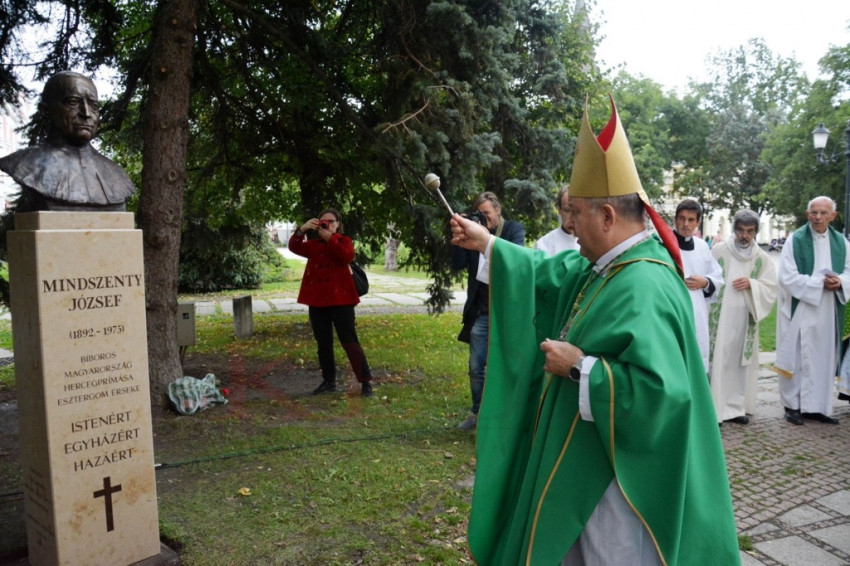 A szentmisét követően a hívek a templom elé vonultak. A megjelenteket Lévai Jánosné önkormányzati képviselő, az egyházügyi munkacsoport vezetője üdvözölte. Köszöntőjében úgy fogalmazott: céljuk, hogy Mindszenty bíboros szellemi hagyatékát ne csak megőrizzék, de városuk közkincsévé tegyék.