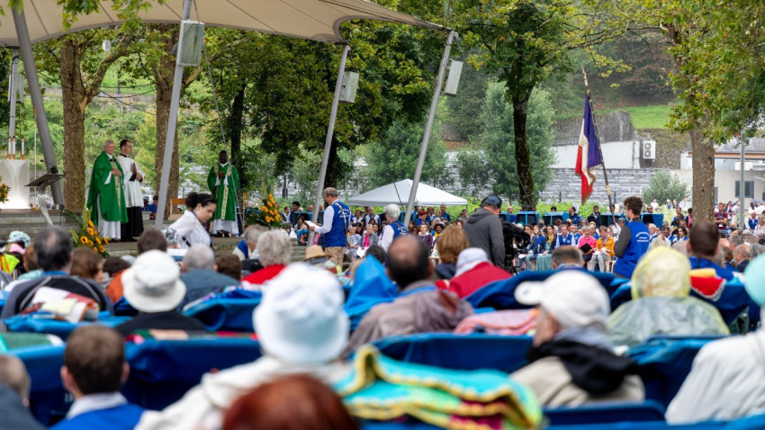 A Nagyboldogasszony-napi ünnepi szentmisét, amelyet augusztus 15-én délelőtt 10 órakor celebrálnak a Jelenések barlangjával szembeni réten, Jean-Marc Micas tarbes-i és lourdes-i püspök vezette. A szentmisére közel 20 000 hívőt vártak. A nemzeti zarándoklatot az asszumpcionista kongregáció (Mária Mennybevételéről Nevezett Ágostonos Kongregáció, latinul: Pia Societas Presbyterorum ab Assumptione, Augustiniani ab Assumptione) szervezi, a La Croix lapot is magában foglaló Bayard csoport tulajdonosai.