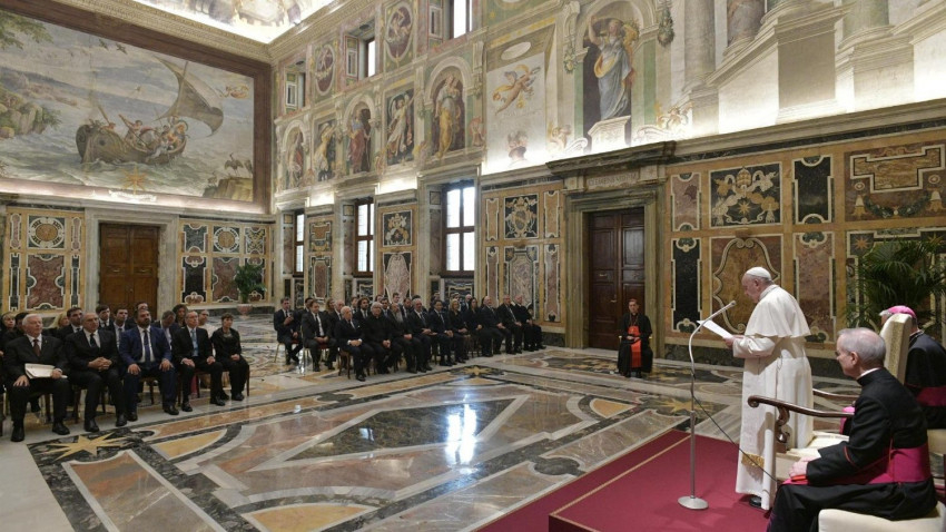 Nagyon boldog vagyok, hogy köszönthetlek benneteket, Az emberi testvériségről a világbéke és a békés együttélés érdekében című Abu-Dzabiban február 4-én aláírt dokumentumról rendezett kongresszus résztvevőit.