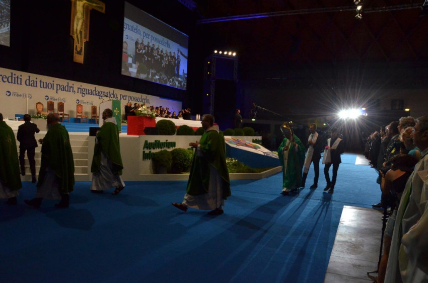„Imádkozzunk a barcelonai terrorcselekmények áldozataiért és kérjük, hogy képesek legyünk továbbadni azt az ölelést, amelyet a feltámadt Krisztus hozott világnak” – ezzel a felhívással kezdődött a szentmise. Francesco Lambiasi, Rimini püspöke szentbeszédének elején idézte Ferenc pápát: „Az evangéliumot joga van minden embernek megismerni és a keresztényeknek kötelességük hirdetni azt, anélkül, hogy bárkit is kizárnának. Nem úgy, ahogy valaki egy új kötelezettséget helyez a másikra, hanem sokkal inkább úgy, mint aki megoszt egy örömöt, ígéretes távlatot ad, egy vonzó ünnepre hív meg.”