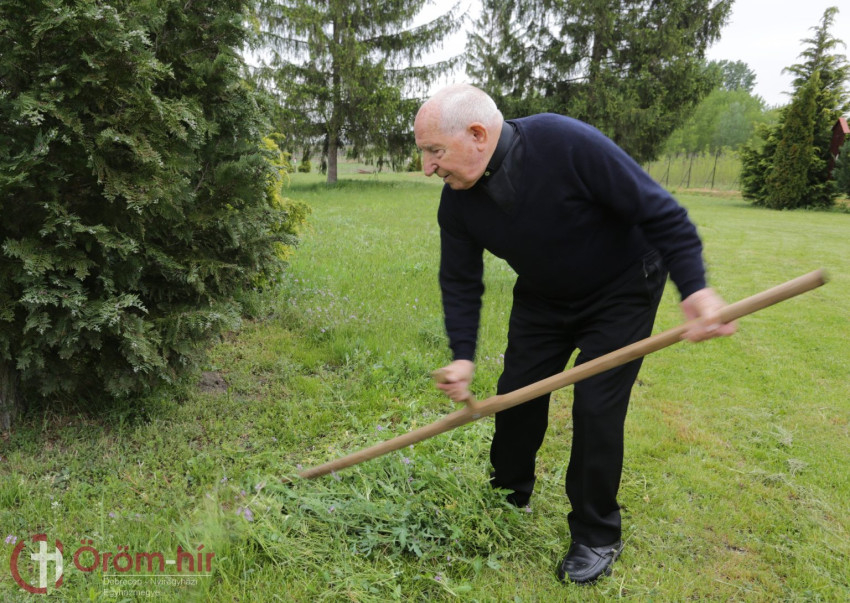 – Pap vagyok, de még mindig helytállok gazdaként is. Aki kertes házban él, az tudja, hogy a munka nem várhat. 6 óra után felébredek, elvégzem a reggeli szentmisét itt a ház kápolnájában, különleges alkalmakkor pedig a templomban. Ezután elimádkozom a zsolozsma első részét, és sorba veszem a ház körüli tennivalókat. Nagy kert tartozik a plébániához, a rendszeres fűnyírás, kaszálás és a növények gondozása is a teendőim része.