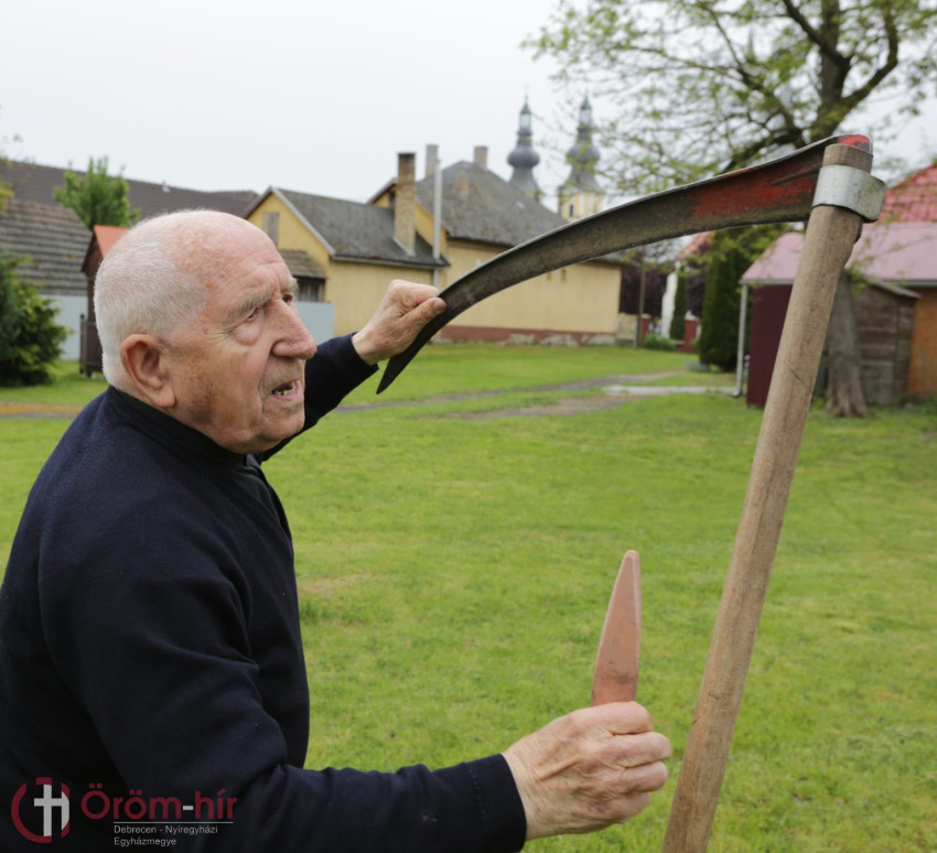 A vállaji születésű Károly atya papi hivatásától sem áll távol a fizikai munka, ezt igazolja az otthonának udvarán található fészerben sorára váró megannyi kerti szerszám, köztük a közel három méter magasra felakasztott kasza, amit igen gyakran leemel fiatalokat is meghazudtoló frissességgel.