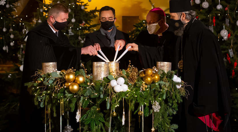 A beszédeket követően a főpásztorok és a polgármester együtt meggyújtották az adventi koszorú első gyertyáját, majd kigyúltak Debrecen karácsonyi fényei.
