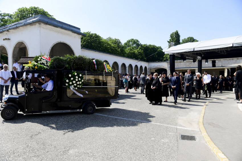 Számos barátja, tisztelője és pályatársa vett búcsút az életének 80. évében elhunyt művésztől kedden a Farkasréti temetőben. A búcsúztatáson részt vett Orbán Viktor miniszterelnök és Áder János köztársasági elnök is.
