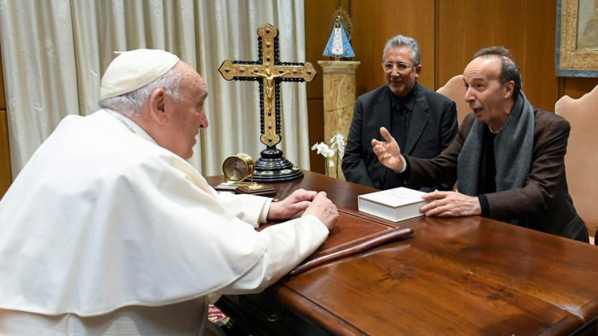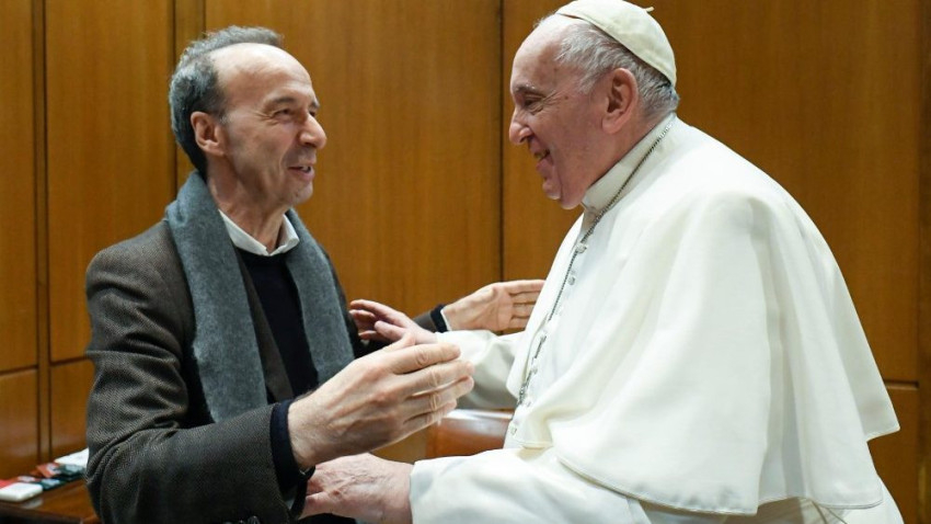 Tavaly húsvét vasárnapján a pápa Benignivel együtt beszélt az evangéliumokról a Raiuno televíziós csatornán. A színész a rá jellemző fergeteges lelkesedéssel többször kifejezte hódolatát a pápának. Egy alkalommal ezt mondta: „A pápa tele van irgalommal, két kézzel markol belőle, amikor ott van az utolsók között is legutolsók között. Árulhatná kilóra. Kérsz tíz deka irgalmasságot? Majd ő ad neked.”