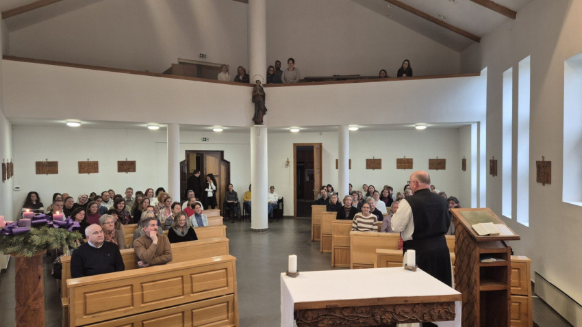 Ezután Dékány Sixtus OCist a karácsony misztériumáról beszélt: az ünnep igazi titka nem abban rejlik, hogy mi készülünk, hanem abban, hogy Isten készül hozzánk. Nemcsak megteremtett bennünket, hanem „egyszülött Fiát küldte el közénk”, hogy magára vegye emberségünket, örömeinket és terheinket. Ezért ünnepli karácsonyt az egész világ – még azok is, akik talán nem is ismerik a teljes tartalmát. Valami sejlik bennük abból a fényből, amely a betlehemi éjszakát beragyogta.
