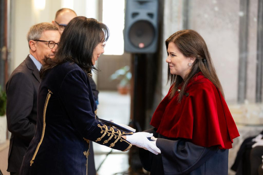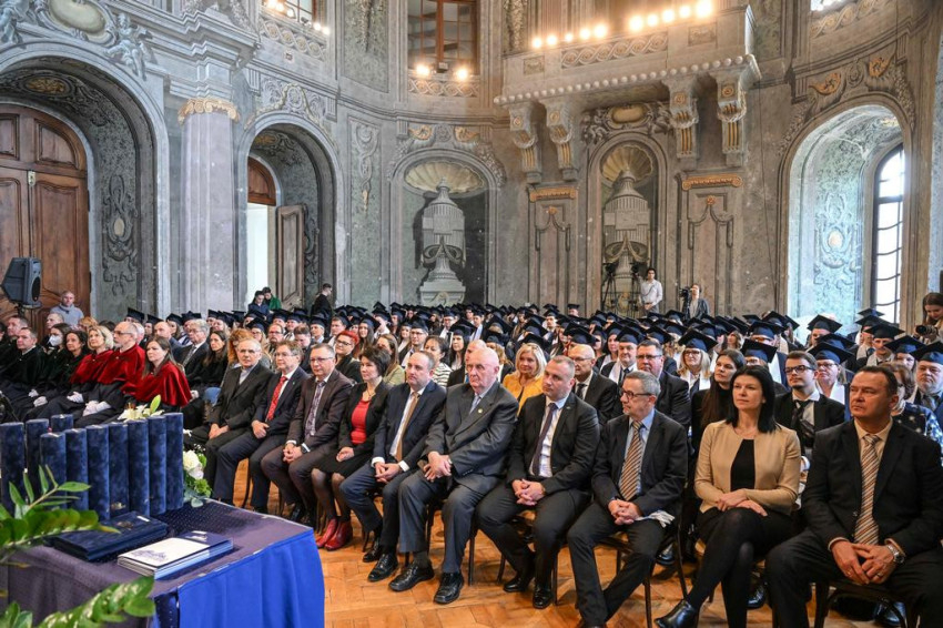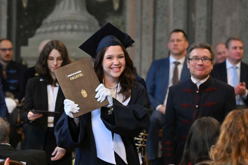 Ezután a habilitációs, majd a doktori oklevelek átadása, a méltatások ismertetése, valamint az ünnepélyes doktori eskütétel következett. Ezt követte a diplomák átadása – minden hallgatót nagy taps köszöntött.