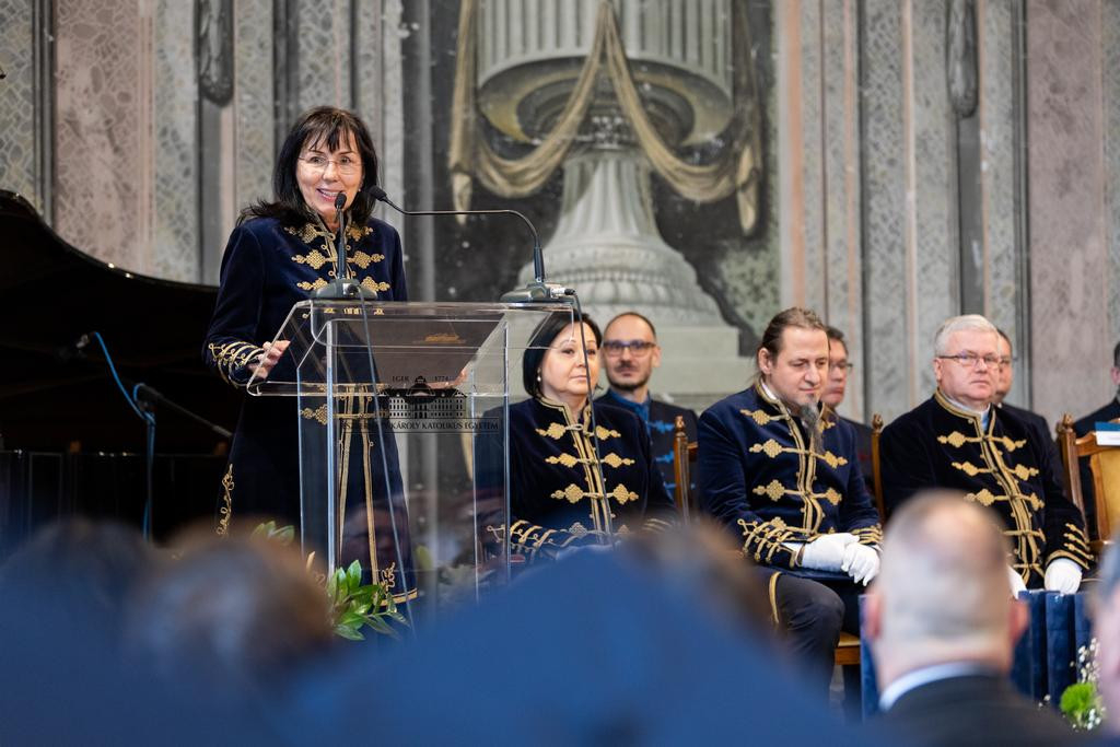 Pajtókné Tari Ilona, az Eszterházy Károly Katolikus Egyetem rektora köszöntőjében kiemelte, a hallgatók büszkék lehetnek arra, hogy egy olyan nagy múltú intézményben szereztek képesítést, amelynek elődjében már a 18. és 19. században is magas színvonalú képzés folyt. Az egyetem a Művészeti Kar önállósodásával február 1-jétől már hat karon fogadja a diákokat gyakorlatorientált, modern képzéssel, amely ugyanakkor épít a hagyományokra és az örök emberi értékekre. Nem véletlen, hogy 2024-ben Magyar Örökség Díjjal ismerték el az egyetem oktatási tevékenységét.