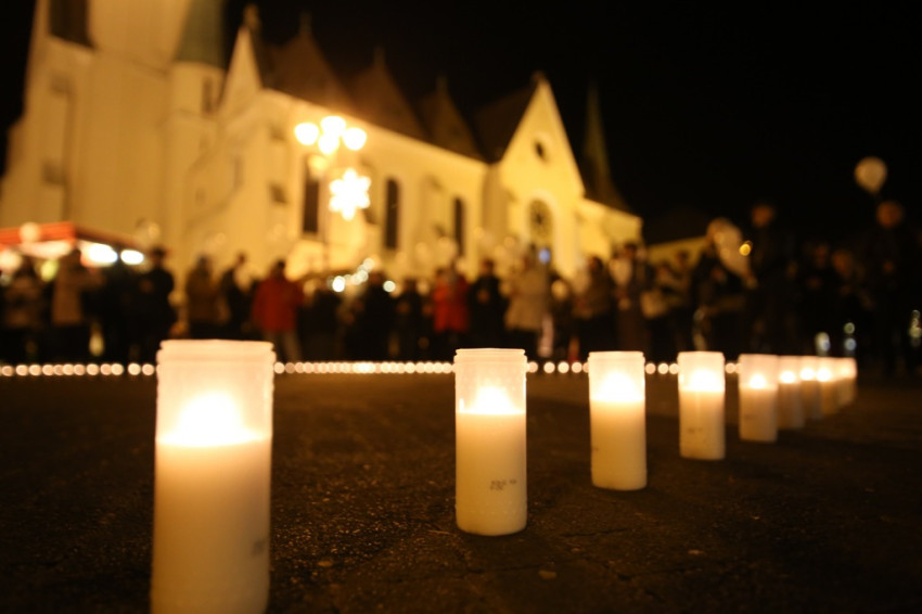 Végül az emlékezők elhelyezték mécseseiket a téren, pillangó alakot formálva belőlük, ezzel szimbolizálva a lelkek búcsúzását. Az emlékezés Varga László megyéspüspök imádságával ért véget, majd az érintett családok a magasba engedték a fehér léggömböket, amelyekre elhunyt gyermeküknek szánt üzeneteiket fogalmazták meg.