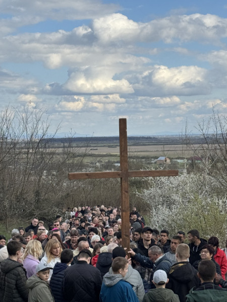 Az idei keresztutat a békéért ajánlották fel. Taizéi énekek, rövid, mély elmélkedések teremtettek összeszedett, természetfeletti légkört, miközben a hívek egyre feljebb jutottak a dombon – megállva útközben a Jézus szenvedését jelképező 14 fakereszt stációnál – egészen a temetőkápolnáig.