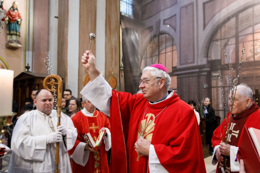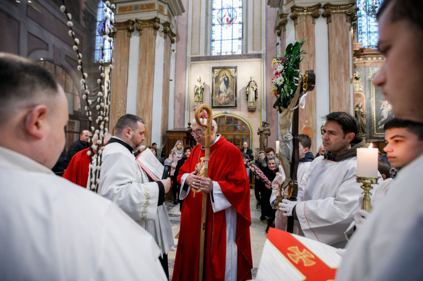 Ünnepi bevonulással kezdődött a virágvasárnapi püspöki szentmise a szabadkai Avilai Szent Teréz-székesegyházban. A főcelebráns Fazekas Ferenc szabadkai megyéspüspök kíséretével a basilica minorba belépve elmondta, azért gyűltek össze a megjelent hívek, hogy az egész egyházzal együtt lélekben előre átéljék az Úr húsvéti misztériumát. „Szívünk minden hitével és odaadással emlékezzünk meg erről az üdvösségszerző bevonulásról” – biztatta a résztvevőket a püspök.
