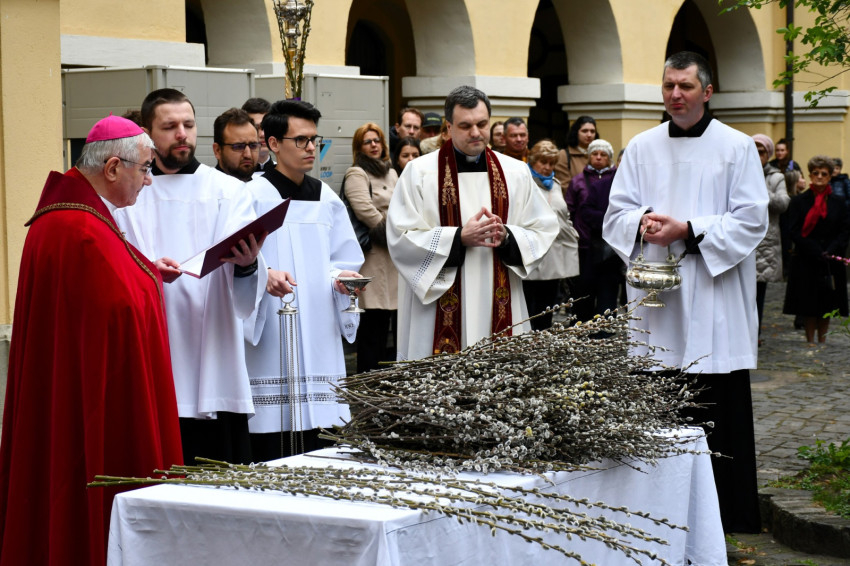 „Már az őskeresztények az Olajfák hegyén gyülekeztek, és innen olajfaágakkal, valamint pálmafaágakkal vonultak a szent városba. Ezt a hagyományt követjük mi is, amikor a vidékünkön barkát szentelünk és körmenetben vonulunk be a templomba. Virágvasárnap Krisztus bevonulásának dicsőséges napja: az önfeláldozás nyitánya azokért, akiket Isten szeret. Vállaljuk ezt fel a mi életünkben is! Amikor nem ragadunk meg a pálmalengetéseknél és az ujjongásnál, hanem elfogadjuk az áldozatot a családért, szeretteinkért, de még az idegenekért, az ellenségekért is. Az igazság szolgálatában, az igazságosság védelmezésében, az emberi méltóságért való kiállásban, a szeretetteljes és feltétel nélküli szolgálatban” – fogalmazott szentbeszédében a főpásztor.
