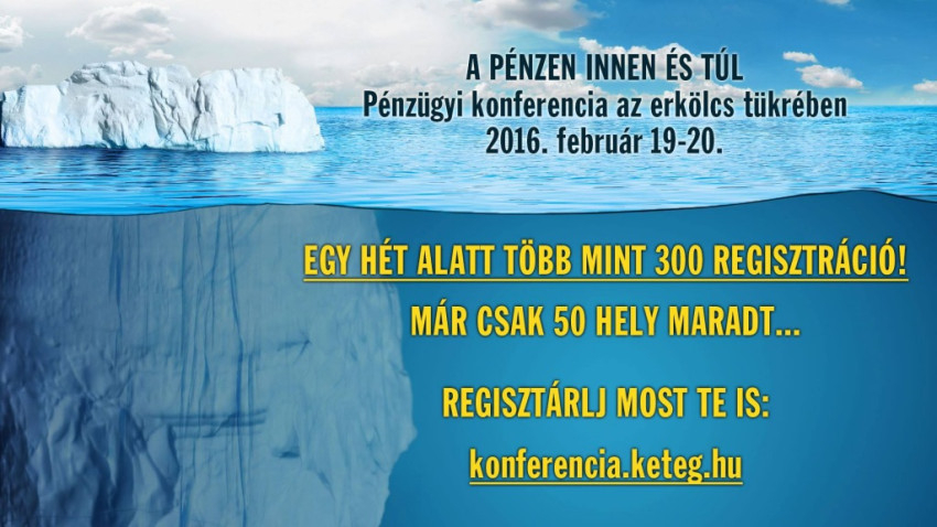 A közelmúltban alakult KETEG Oikonomia Kutató Intézet Alapítvány A pénzen innen és túl címmel pénzügyi és egyben etikai-filozófiai szakkonferenciát rendez február 19-én és 20-án a budapesti Új Városháza épületében (V. kerület, Váci utca 62–64.).