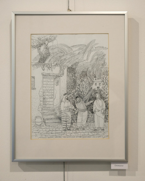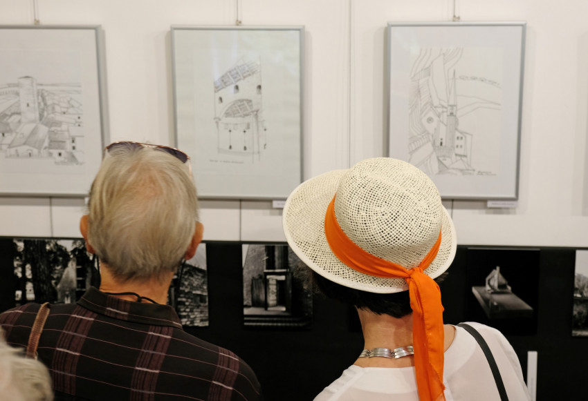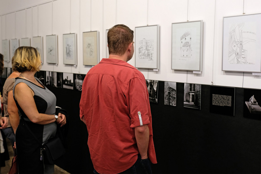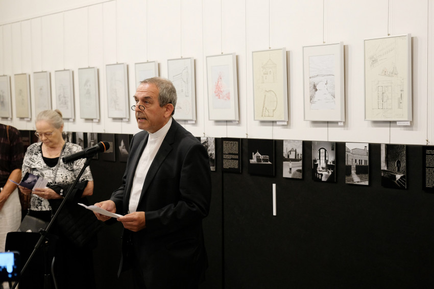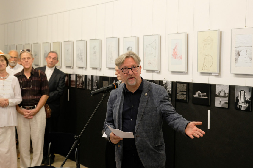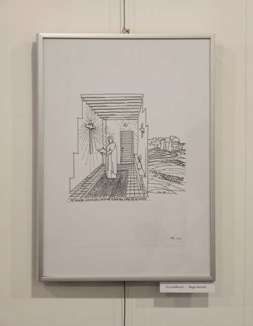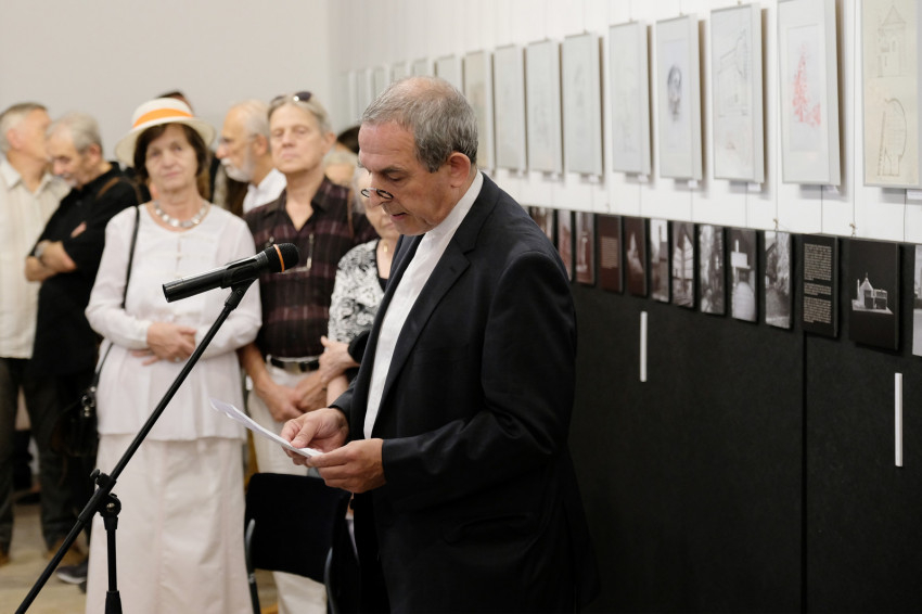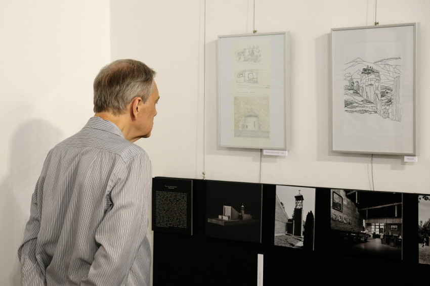 „Számomra a templomok építése csodálatos élmények és találkozások sorozata volt, megtapasztalhattam közösségek megerősödését vagy épp kialakulását, ahogy az Isten háza egyre magasodott. A templomépítés közös társadalmi munka volt, amely egyben egyfajta ideológiai szembenállást is jelentett. A hívő közösség nemcsak a liturgiában vált eggyé, hanem a templom építésében is. Az emberek magatartása sok esetben a rejtőzködő hit csodálatos megnyilvánulásait hozta felszínre: találkozásokat, amelyek örökre emlékezetesek maradnak számomra” – vallotta a művész, akinek a kiállításon tervei, templomairól készült rajzai mellett most főként bibliai tematikájú rajzai láthatók, melyeket a kétezres években készített, főként betegsége idején.