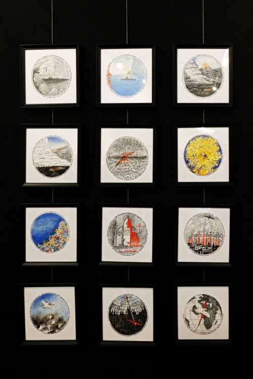 XVI. Benedek pápa átfogó ökológiája és Ferenc pápa teremtésvédelmi üzenete ihlették az építész teremtésvédelem tematikájú rajzait, egy olyan ciklusét, mely szinte profetikusan ábrázolja korunk problémáit, küzdelmeit. Ezzel szemben, a kiállítóterem másik végén A teremtés ciklus foglal helyet, melyről azt nyilatkozta: az első nap számára a legkedvesebb. „Az ember alkotó munkája az istenit idézi. A keresésből, a sötétségből bontakozik ki az alkotás. Legyen az zene, kép, szobor vagy éppen épület.”