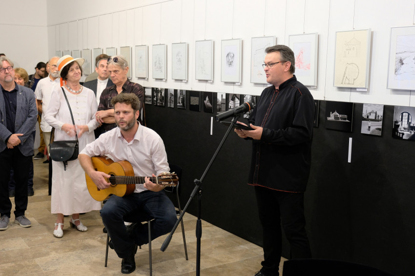 A kiállítás megnyitása előtt Csapó József énekművész, az építész veje és Horváth Árpád gitárművész egy ecuadori népdalt adott elő.