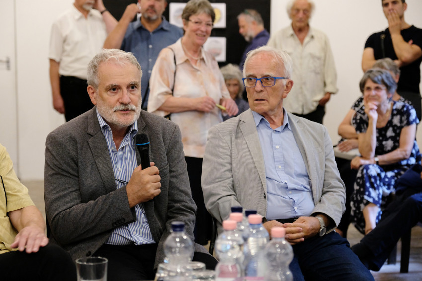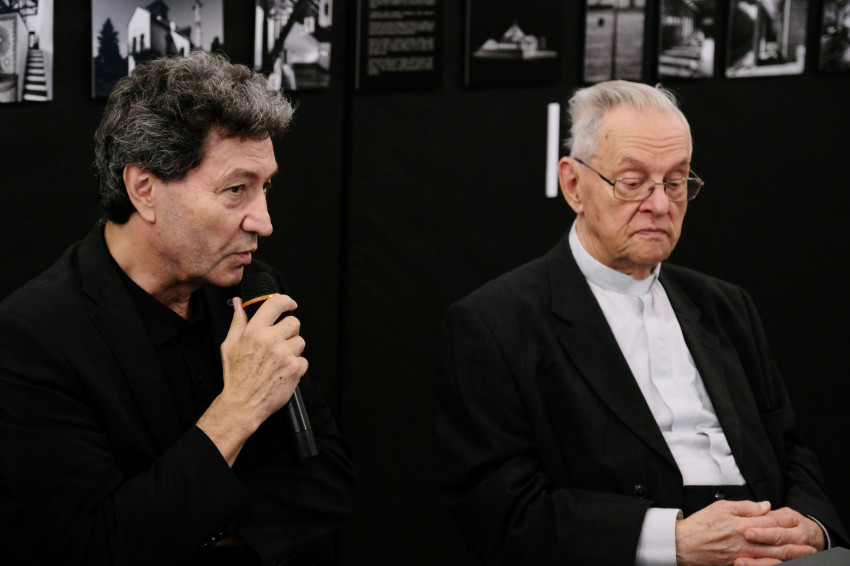 Krizsán András a beszélgetés felvezetéseként elmondta, révfülöpi lévén gimnazista korában átélte, hogyan épül a Balaton-parti templom. Amikor meglátta a vörös permitből épülő istenháza egyszerűségét, méltóságát, szakrális belső terét, valami megindult benne, és ez komoly lökést jelentett számára a pályaválasztásában. Később a révfülöpi evangélikus templomot fejezte be ő maga, a torony épült az ő tervei alapján.