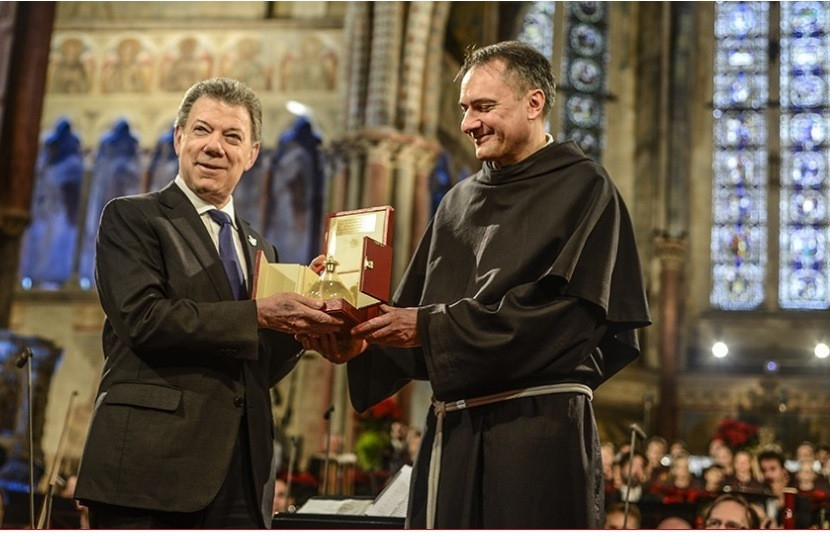 Juan Manuel Santos elnök, akit 2016-ban Nobel-békedíjjal tüntettek ki, december 17-én Assisibe látogatott, ahol Szent Ferenc lámpását (másik nevén: a Béke lámpását) vehette át a kolumbiai béke megteremtésében játszott szerepéért.