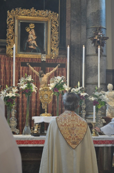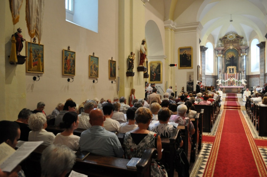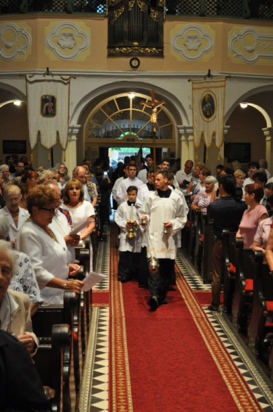 A 15 órakor kezdődő szentmisét az újmisés Nagy Tibor mutatta be. Szentbeszédében Szűz Mária és Szent Fia szoros emberi és lelki kapcsolatáról elmélkedett. Jézus ezt a bensőséges viszonyt, ezt a szent kapcsolatot a keresztfáról a legszorosabb szövetségre emelte az ember és az Istenanya között, amikor János apostolt, így vele együtt minket is a Szűzanya oltalmába helyezett. Szűz Mária Jézusba vetett rendületlen hitét a kánai menyegzőn is kinyilvánította, amikor Jézus első nyilvános csodatevése előtt arra buzdított: „Tegyetek meg mindent, amit mond!” S ez az anyai felszólítás több mint tanács: cselekvésre való biztatás, hogy oltalma alatt bátran kövessük Fia tanítását, váltsuk tettekre, hogy majd a megváltás gyümölcseit élvezhessük az Örök Hazában.