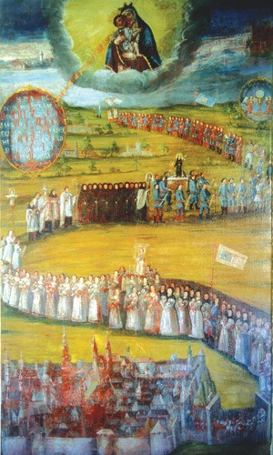Tizenkét év múlva, 1715. június 19-én, szerdán hajnalban első ízben észlelték, hogy a fogadalmi képen ábrázolt Istenanya vérrel könnyezik. Az eseménynek hamar híre ment a hívő nép körében. Többszöri könnyezést és számos imameghallgatást követően, alapos vizsgálatok után Keresztély Ágost esztergomi érsek 1716. október 16-án engedélyezte a kép nyilvános tiszteletét. Így a fogadalmi kép immár kegyképként mély tiszteletnek örvend a mai napig.