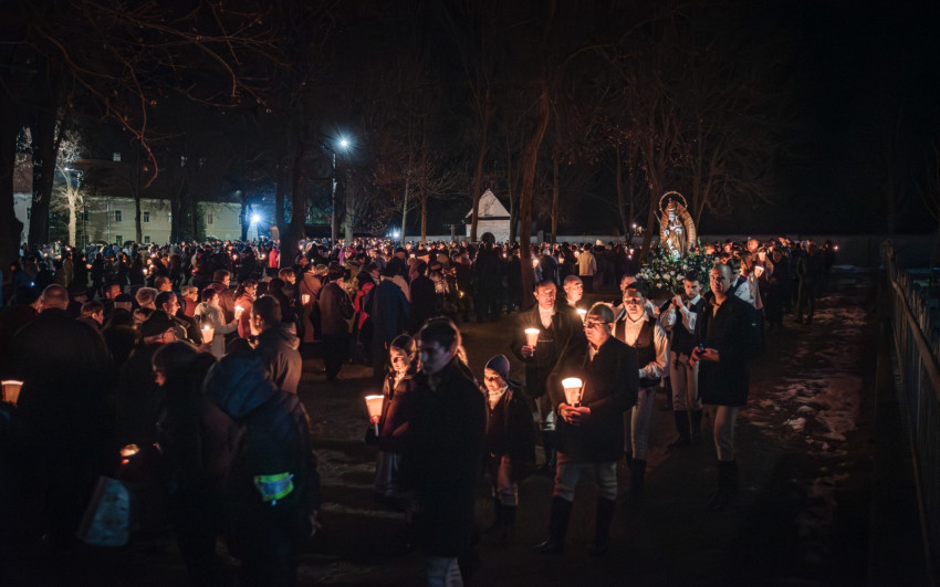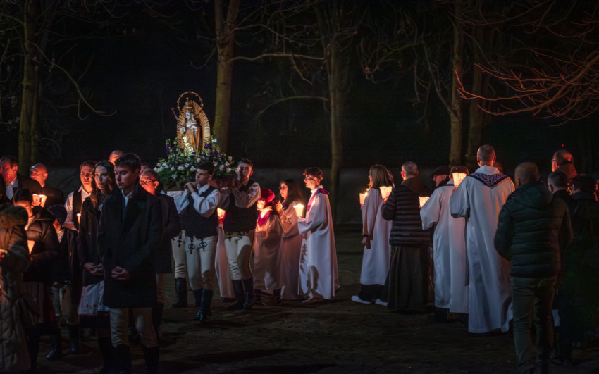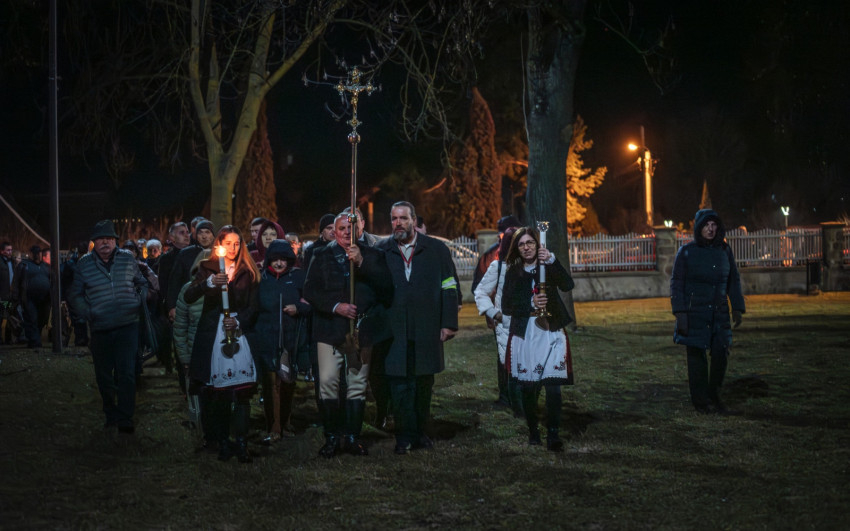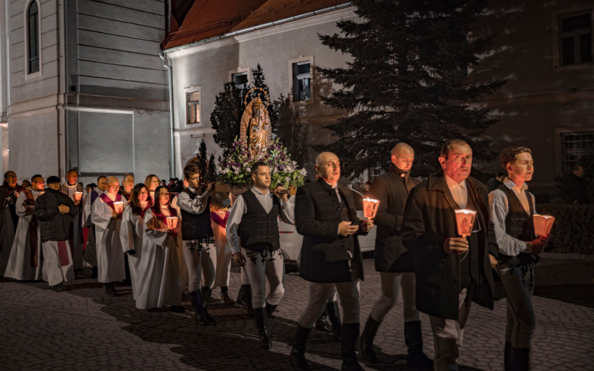 A szentmise után ugyancsak a kadicsfalvi-bethlenfalvi hívek vezetésével a fájdalmas olvasót imádkozták a zarándokok. A gyertyás körmenetben viseletbe öltözött fiatalok vitték a Szűzanya kegyszobrának másolatát.
