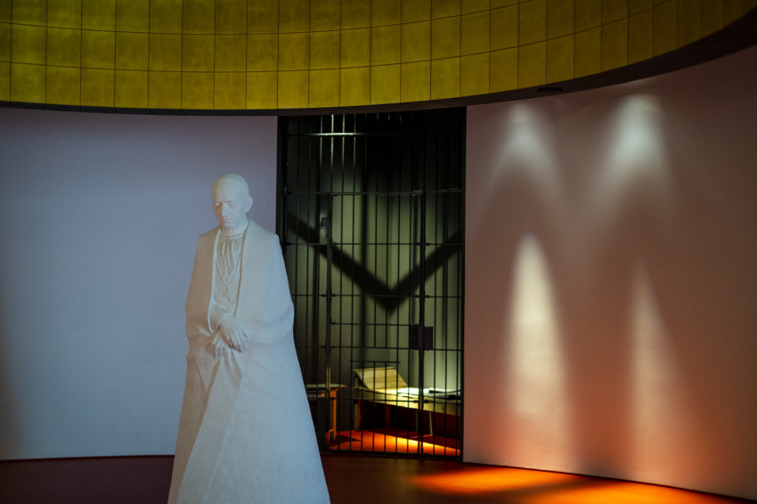– Igen. Itt kizárólag eredeti hangok és az Emlékirataimból vett részletek idézik meg Mindszenty bíboros fehérvértanúságát. A cellaenteriőr kis asztalkáján két ostya jeleníti meg jelképesen a Conti utcai börtönben lezajlott bilokációs találkozást és közös szentmisét Pio atyával.
