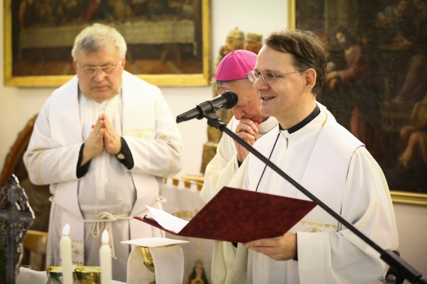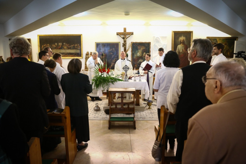 A szentmisét megelőzően Héray András FSO kápolnaigazgató emlékezett a kápolna kertjében nyugvó „Isten vándorára”.