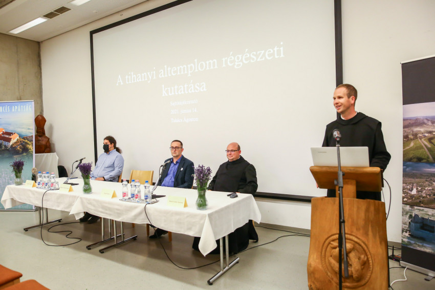 Takács Ágoston vezető régész, bencés öregdiák az 1055-ben alapított apátság építéstörténetének fontosabb állomásait villantotta fel: 1526 után végvárrá alakították, 1701-ig hadi célokat szolgált; eredeti rendeltetését visszanyerve, 1720 és 1760 között a visszatért bencések barokk stílusban építették újra. Az apátságot 1899-ben felújították, a királykripta historizáló díszítőfestést kapott, amit akkor távolítottak el, amikor 1953-ban sor került az altemplom említett részleges régészeti feltárására. A jelenleg zajló munka friss eredményeit az időben és az ásatási rétegekben visszafelé haladva László Gyula és Nagy Emese kutatásaitól mutatta be. A visszatemetett földrétegből a 19. századi színes, festett vakolat számtalan töredéke került elő. A 18. századra egy I. Lipót idejéből való, magyar veretű pénzérme és egy korabeli mellkereszt utal. A 16–17. század végvári küzdelmeiről lőszermaradványok, szakállas puskákhoz használt ólomgolyók tanúskodnak. Az altemplom középkori átalakítását valószínűsíti az a Luxemburgi Zsigmond-kori parvus (ezüstérme), amelyet a napokban találtak meg a régészek az ásatási területen. Egy ponton pedig sikerült rálelni a kripta 11. századi járószintjére, a kőpor felhasználásával öntött padló maradványaira is.