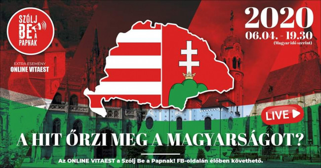 Az online követhető, A hit őrzi meg a magyarságot? című vitaest vendégei lesznek: Böjte Csaba erdélyi ferences szerzetes, Kacsó Géza kárpátaljai református lelkész, Nagy Olivér felvidéki evangélikus lelkész és Orosz István görögkatolikus pap, a Máriapócsi Nemzeti Kegyhely igazgatója. A moderátor ifj. Hájas István református teológushallgató, a Szólj Be a Papnak! csapatának tagja.