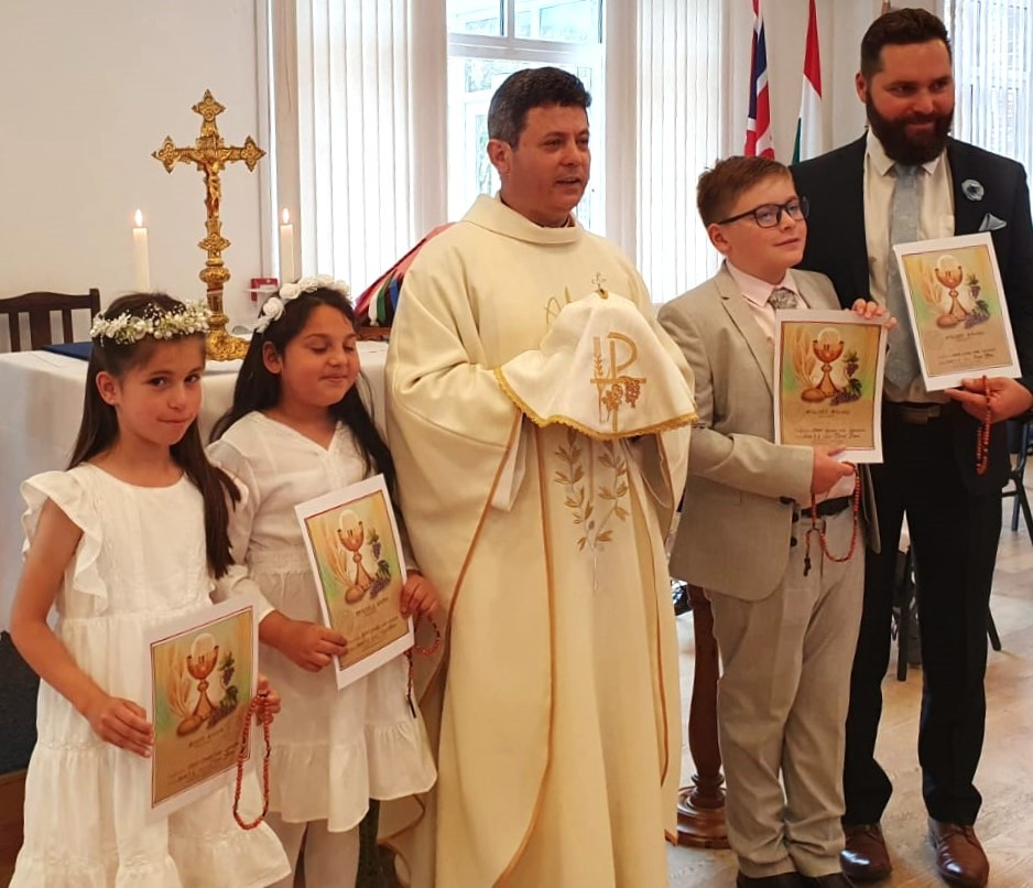 „Az Úr Jézus, aki jelen van az Oltáriszentségben, ma is tud csodát tenni, hiszen az elsőáldozók között fiával együtt egy édesapa is magához vehette az örökélet zálogát – számolt be Csicsó János angliai magyar főlelkész.
