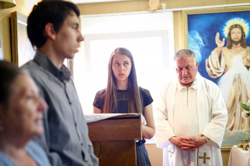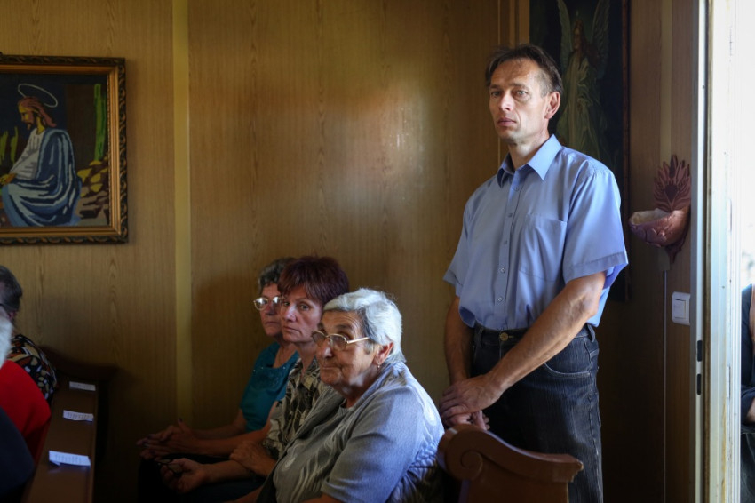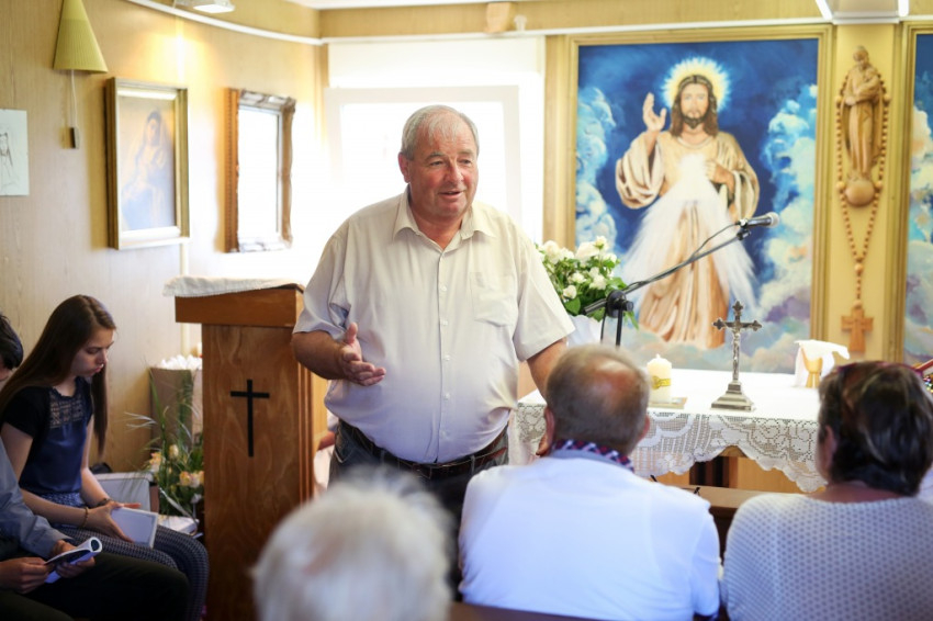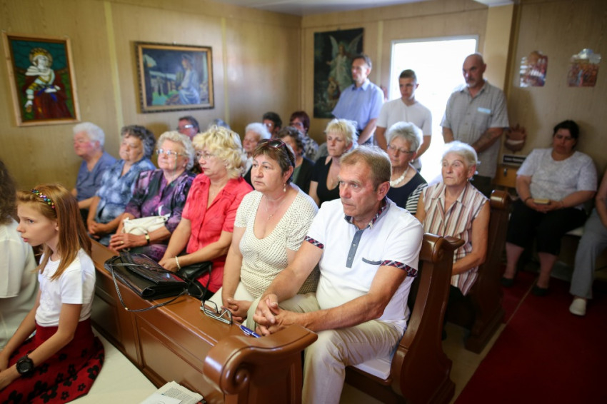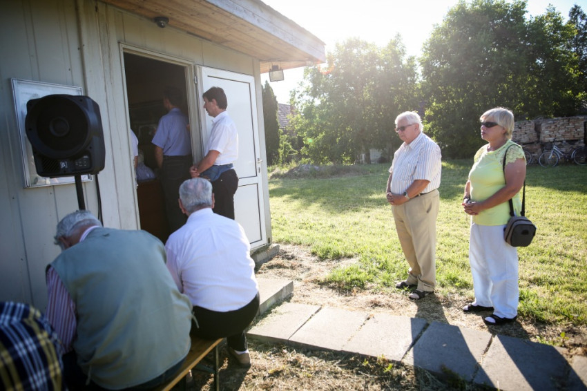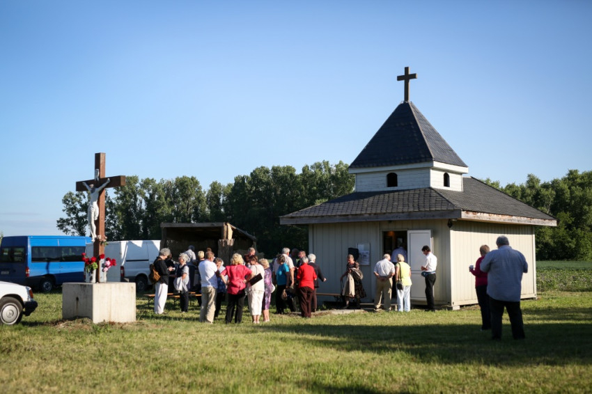 A templomocskához a Ráckevei-Dunától kora délután érkezünk. A rengeteg fénytől káprázik a szemünk; már egyórányi üldögélés is elég volt a folyóparton ahhoz, hogy az örök nyár igézetébe kerüljünk. Kis Gábor polgármester munkásruhában: a mise előkészítésén ügyködik, a hangosítást rakja össze. Kedves vendéglátó és nagy mesélő: pár perc elég ahhoz, hogy képbe hozzon bennünket a községgel és a helyi hitélettel kapcsolatban.