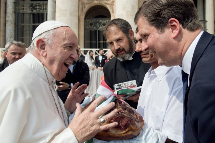 A csévharasztiak zarándokcsoportja Antal András állandó diakónus vezetésével részt vett az április 5-i vatikáni általános kihallgatáson, ahol ételadományt adtak át Ferenc pápának: három levágott húsvéti bárányt és hetvenkét sonkát. A zarándokcsoport április 3-án Beer Miklós áldásával indult útnak. A tizenöt tagú csoport a csévharaszti plébánián dolgozó szegényekből, az egyházközség híveiből és a falu vezetőiből verbuválódott. A bárányokat a plébánia tangazdaságában nevelték, és a sonkák többségét is az ott dolgozó szegények készítették, illetve ajánlották fel.