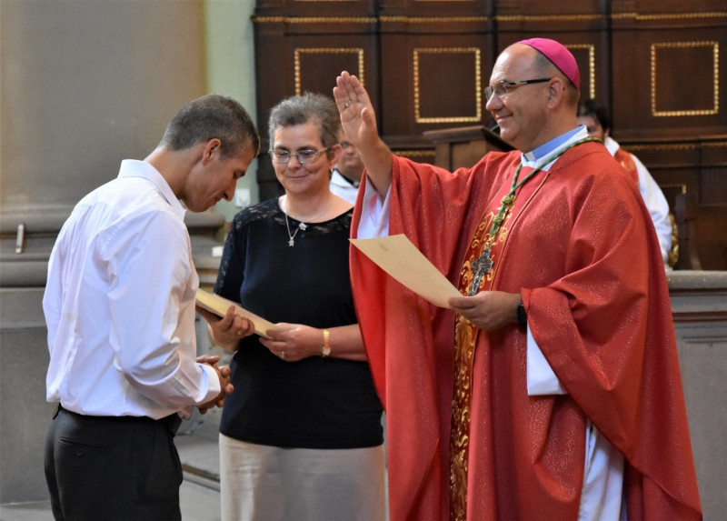 A Veni Sancte szentmise püspöki áldással és a főpásztor szívélyes elbocsátó szavaival ért véget. „Amikor átadtam nektek a Missio Canonicát, bizakodó szeretettel néztetek rám. Én is ilyen örömmel és bizakodással küldelek most benneteket a rátok bízottak szolgálatára” – mondta Marton Zsolt megyéspüspök.